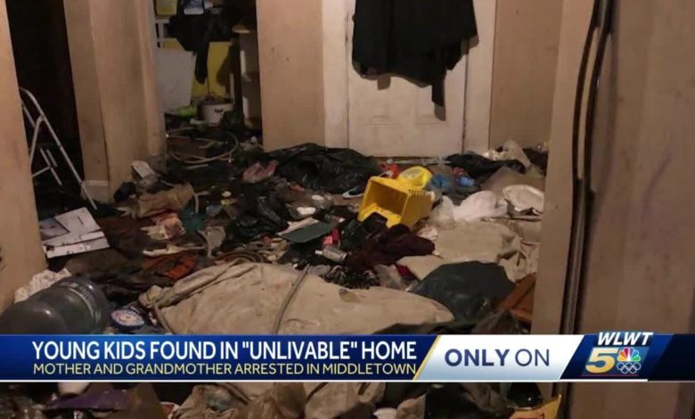 A mother and grandmother were arrested after young kids were found in an unlivable home in Middletown.