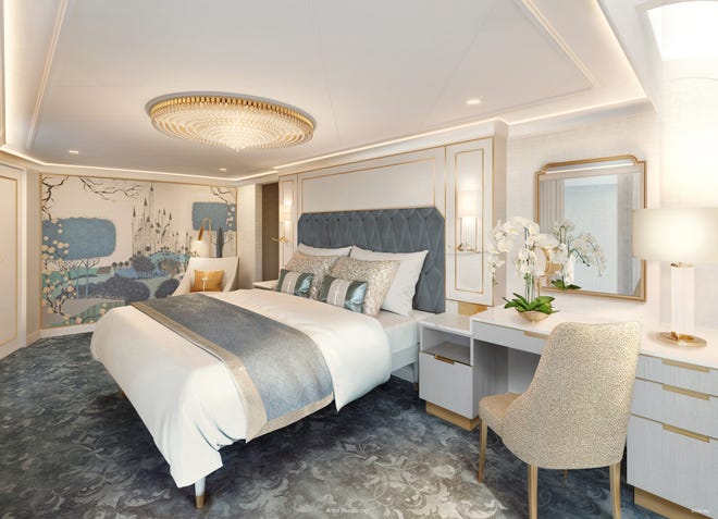 Unique artwork inspired by "Cinderella" and other Disney classics adorn the staterooms, and 900 of 1,254 staterooms will be connected adjoining, making this ship the most family-friendly of the Disney fleet.