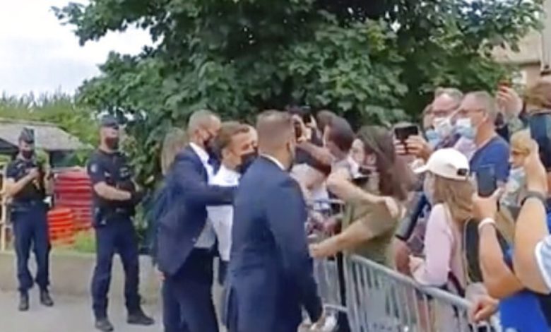 According to the Associated Press, Damien Tarel was arrested after slapping Macron in the face Tuesday while the French leader was visiting a small town in southeastern France.