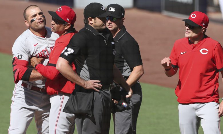Bell and coaches Delino DeShields and Freddie Benavides had to keep Votto away from Additon, who then ejected the player and the manager. Crew chief Jim Reynolds said after the game that Votto was booted because he “just lost control.”