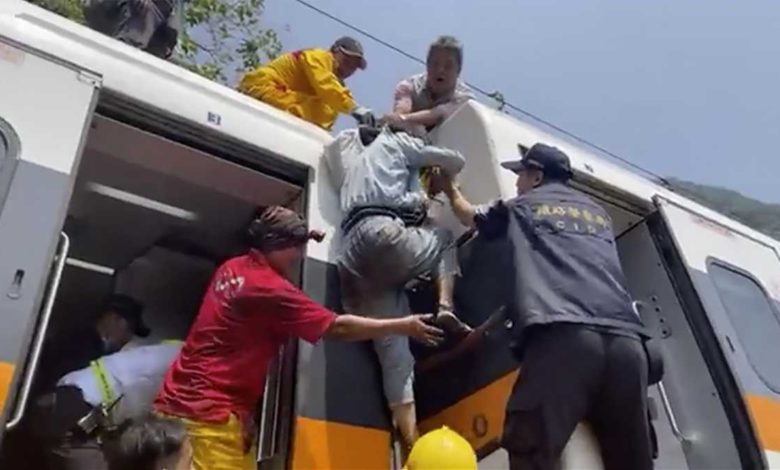 The train was carrying 494 people at the start of a long holiday weekend on Friday when it smashed into the construction truck that slid down a hillside above the tracks, the Taiwan Railways Administration said. Many passengers were crushed just before the train entered a tunnel, while some survivors were forced to climb out of windows and walk along the train's roof to safety.