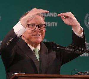 DeWine was in Cleveland for the "soft launch" of Ohio's first federally coordinated mass COVID-19 vaccination clinic at Cleveland State University's Wolstein Center.