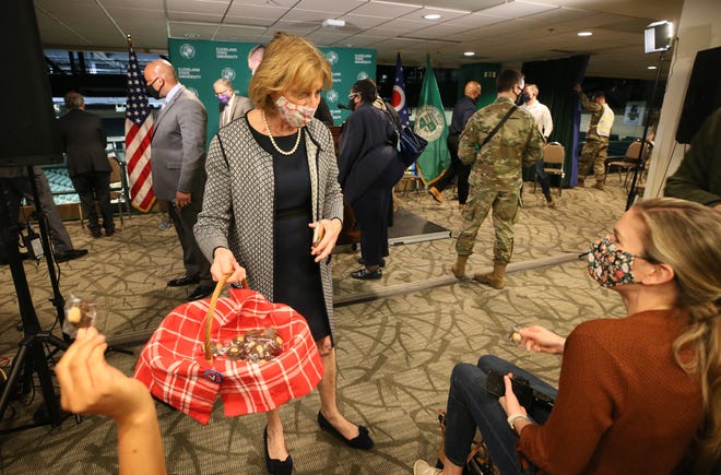 DeWine said he visited Tuesday morning with some of the first Ohioans to receive a vaccine administered by medics from Fort Campbell, Kentucky, at the Wolstein Center.
