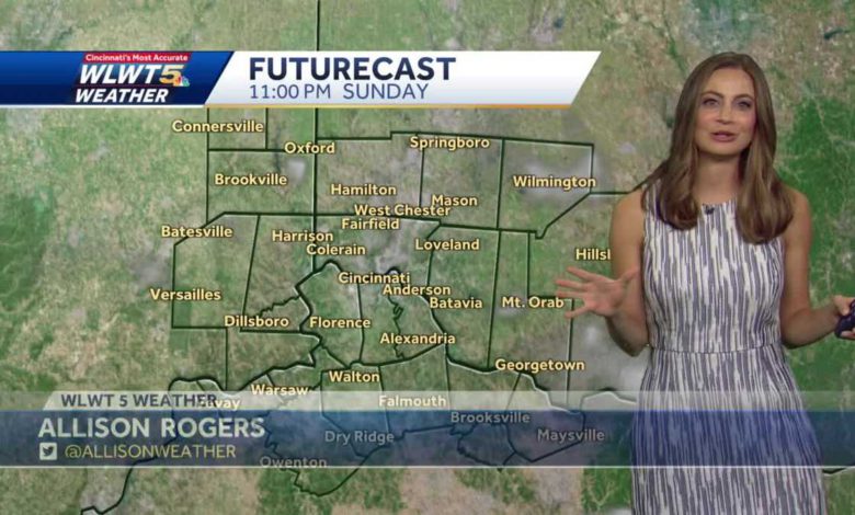 ABSOLUTELY. IT’S SO GOOD TO SEE ENDINGS LIKE THAT WHEN YOU SEE THE MISSING DOG POSTER, YOU ALWAYS FEEL SO BAD OR CAT, YOU KNOW MISSING ANIMAL AND GENERALLY YOUR HEART JUST BREAKS. SO IT’S SO GOODO TSEE A HAPPY ENDING FOR THEM AND HPYAP COUPLE DAYS FOR US. IT SEEMS YES SOME NICE WEATHER ON THE HORIZON. YES, VERY EXCITED TO START THE WEEK WITH THAT. ABSOLUTELY THE HUMIDITY TOO TOMORROW NOT GOING TO BE AS BAD EITHERO S FEELING COMFORTABLE OUTSIDE TOMORROW JUST LIKE IT FELT TODAY THAT DROP IN HUMIDITY ISTH TIME OF YEAR THAT DROP IN HUM. MAKES ALL THE DIFFERENCE FOR US TO SAY THOUGH THROUGH THURSDAY WILL START TO FEEL THEY CAN HUMIDITY INCREASING A LITTLE BIT FOR US. SO IT STARTS TO BE A LITTLE BIT MORE HUMIDND A STICKY OUTSIDE MOVING FORWARD ON TUEAYSD THROUGH THE END OF THE WEEK, BUT TEMPERATESUR RIGHT NOW SITTING AT 76 IN CINCINNATI PRETTY SOON THOUGH. I EXPECT OUR TEMPERATURE WILL DROP DOWN INTO THEOW L 70S HERE FAIRLY SOON 69 IN ALEXANDRIA 67 DEGREES IN BROOKVILLE 67 IN LOVELAND 69 AND WILMINGTON AND 71 DOWN 75 A LITTLE BIT CLOSER TO DRY RIDGE THERE. SO TEMPERATURES BY MORNGNI DROP DOWN TO THE MID-60S NEIC AND QUIET TOMORROW MORNING JUST AS IT IS RIGHT NOW WE A NREOT TALKING ABOUT RAIN FOR A COUPLE OF DAYS,HI WCH IS SOME GOOD NEWS. WE FINALLY C DANRY OUT AFTER ALL THE WET WEATHER. WE’VE HAD OVER THE LAST SEVERAL DAYS. SO BY TOMORROW MORNING, HERE’S EIGHT O’CLOCK LOONGKI NICE AND DRY OUTSIDE THE SUNSET MIGHT ALSO B AE LITTLE BIT BRIGHTER THAN USUAL BECAUSE WE ACTUALLY HAVE A HAZY SKY DUE TO SOME OF THE WILDFIRE SMOKE HAPPENING OUT WEST THAT’S ACTUALLY MOVING IN OUR ATMOSPHERE. SO THAT’S GETTING A LITTLE BIT OF A HAZE. YOU MIGHT NOTICE SOME VERY BRIGHT AND VIVID SUNSETS AND SUNRISES TOO. SO I’M GOING TO LOOK OUT FOR ESPECIALLY IF YOU’RE PHOTOGRAPHER AND YOU ENJOY SEEING THOSE SO BY TOMORROW AFTERNOON FUTURECAST DOES TRY TO PULL IN A COUPLE SHOWERS. I’M TNO REALLY ANTICIPATING THAT THIS ACTUALLY HAPPENS. I EXPECT WILL BE MOSTLY DRY. MAYBE A COUPLE OF PASSING CLOUDS REHE OR THERE BUT OVERALL STAYING DRY TOMORROW AND THEN AGAIN ON TUESDAY AND MOST OF WEDNESDAY, TOO. TEMPERATURES BY MORNING WILL DROP DOWN TO ABOUT 71 BY 9 UP TO 80 BY LUNCHTIME AND THEN 84 FOR ATTH HIGH TEMPERATURE TOMORROW AFTERNOON. SO IF YOUR KIDS HAVE ANY SUMMER CAMPS, THEY’RE HEADED OFF TO TOMORROW. YOUON D’T HAVE TO WORRY ABOUT RAIN OR IF YOU’VE GOT ANY PRACTICES YOU WANTO T EXERCISE OUTSIDE ANYTHING LIKE THAT. THEOR FECAST IS LOOKING PRETTY GOOD IF YOU’RE HEADING OUT TO THE REDS GAMES FIRST PITCH TEMPERATURE 83 TOMORROW NIGHT AND THENY B TUESDAY 82 FOR THAT FIRST INNING AND THEN 82 FOR WEDNESDAY’S GAME AS WELL. THERE COULD BE A STRAY SHOWER. MOVING THROUGH HERE ON WEDNESDAY, BUT OVERALL I EXPECT MO OSTF US TO STAY DRY AND MOSTLY SUNNY TONIGHT TEMPERATURES DIPPED DOWN TO ABOUT 67 SO A MILD START TOMORROW MORNING AND A COMFORTABLE START TOMORROW MORNING 87 ON TUESDAY. THAT’S GOING TO BE ONE OF THE WARMER. YEARS. WE HAVE ALL WEEK LONG BY THE TIME WE GET TO THE WEEKEND RAIN CHANCES START TO GO UP ON FRIDAY WITH A LIKELY CHANCE OF SEEING SOME RAIN AND THUNDERSTORMS BY FRIDAY EVENING AND THEN SOME SCATTERED SHOWERS OF POSSIBILITIES SATURDAY AND THEN LIKELY R