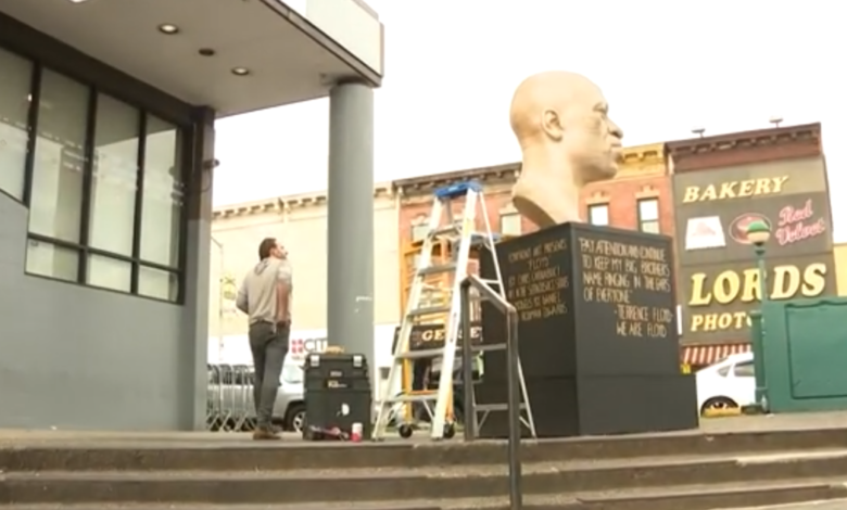 NEW YORK CITY -- A statue of George Floyd that had been vandalized with paint has been taken down for repairs and a new location.