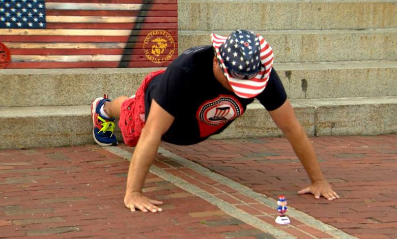 Boston is the 30th state capital he's visited on a quest to visit all 50 state capitals, doing 50 push-ups in 50 days.