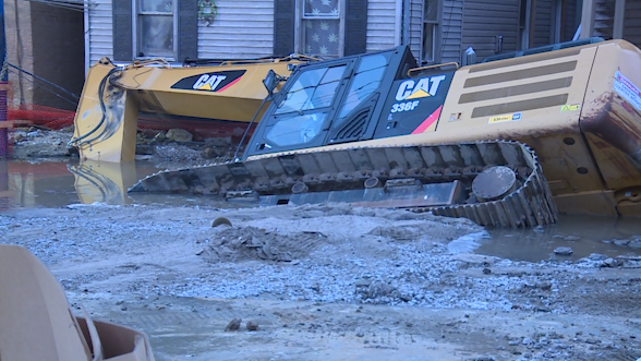 Construction crews and police reports say the incident happened around 3:30 a.m. Saturday. The excavator, part of the massive repair of a 60-inch water main break.