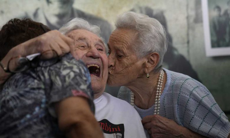 For more than seven decades, Martin Adler treasured a back-and-white photo of himself as a young American soldier with a broad smile with three impeccably dressed Italian children he is credited with saving as the Nazis retreated northward in 1944.On Monday, the 97-year-old World War II veteran met the three siblings — now octogenarians themselves — in person for the first time since the war. Adler held out his hand to grasp those of Bruno, Mafalda and Giuliana Naldi for the joyful reunion at Bologna's airport after a 20-hour journey from Boca Raton, Florida. Then, just as he did as a 20-year-old soldier in their village of Monterenzio, he handed out bars of American chocolate."Look at my smile," Adler said of the long-awaited in-person reunion, made possible by the reach of social media. It was a happy ending to a story that could easily have been a tragedy. The very first time the soldier and the children saw each other, in 1944, the three faces peeked out of a huge wicker basket where their mother had hidden them as soldiers approached. Adler thought the house was empty, so he trained his machine gun on the basket when he heard a sound, thinking a German soldier was hiding inside. "The mother, Mamma, came out and stood right in front of my gun to stop me (from) shooting," Adler recalled. "She put her stomach right against my gun, yelling, 'Bambinis! Bambinis! Bambinis!' pounding my chest," Adler recalled. "That was a real hero, the mother, not me. The mother was a real hero. Can you imagine you standing yourself in front of a gun and screaming 'Children! No!'" he said. Adler still trembles when he remembers that he was only seconds away from opening fire on the basket. And after all these decades, he still suffers nightmares from the war, said his daughter, Rachelle Donley. The children, aged 3 to 6 when they met, were a happy memory. His company stayed on in the village for a while and he would come by and play with them. Giuliana Naldi, the youngest, is the only one of the three with any recollection of the event. She recalls climbing out of the basket and seeing Adler and another U.S. soldier, who has since died."They were laughing," Naldi, now 80, remembers. "They were happy they didn't shoot." She, on the other hand, didn't quite comprehend the close call. "We weren't afraid for anything," she said. She also remembers the soldier's chocolate, which came in a blue and white wrapper. "We ate so much of that chocolate,'' she laughed.Donley decided during the COVID-19 lockdown to use social media to try to track down the children in the old black-and-white photo, starting with veterans' groups in North America.Eventually the photo was spotted by an Italian journalist who had written a book on World War II. He was able to track down Adler's regiment and where it had been stationed from a small detail in another photograph. The smiling photo was then published in a local newspaper, leading to the discovery of the identities of the three children, who by then were grandparents themselves. They shared a video reunion in December, and waited until the easing of pandemic travel rules made the trans-Atlantic trip possible."I am so happy and so proud of him. Because things could have been so different in just a second. Because he hesitated, there have been generations of people," Donley said. The serendipity isn't lost on Giuliana Naldi's 30-year-old granddaughter, Roberta Fontana, one of six children, eight grandchildren and two great-grandchildren who descended from the three children hidden in the wicker basket. "Knowing that Martin could have shot and that none of my family would exist is something very big," Fontana said. "It is very emotional."During his stay in Italy, Adler will spend some time in the village where he was stationed, before traveling on to Florence, Naples and Rome, where he hopes to meet Pope Francis."My dad really wants to meet the pope," Donley said. "He wants to share his message of peace and love. My dad is all about peace."