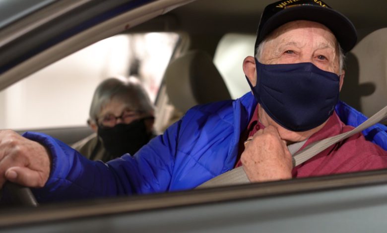 The Cold Spring, Kentucky, couple got the vaccine at UC Health’s drive-through vaccination site on Tuesday. Noel, 93, and Virginia, 91, will return in three weeks to get their second dose.