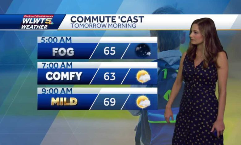 SOAK CITY. ASHLEY: I DON’T THINK I AM READY R FO TOP ABOUT SUMMER COMING TO AN END. STEV:EN I NEED TEMPERATURESO T BE AS HOT AS THEY CAN BE FOR AS LONG AS POSSIBLE. ASHLEY: TWO IN DENIAL ANCHORS HERE. ALLIN:SOHE T FACT THAT CONEY IS CLOSING FOR THE SEASON, IT IS TIME TO TALK ABOUT THE CHRISTMAS NIGHTS OF LIGHTS. STEVEN:Y M WIFE WAS TALKING ABOUT THAT OVER THE WEEKEND. ASHL:EY SKIPPING FALL AND THANKSGIVING. ALLISON: TEMPERATURES RIGHT NOW ARE SITTING AT 69. WE ARE HAVING SOME NICE FALL WEATHER THIS WEEK IN PAR BUT OTHER TIMES THERE IS WARM WEATHER. BY THE END OF E WEEKEND, WE COULD BE LOOKING AT TEMPERATURES NEARING 90 DEGREES. 69 CINCINNATI, 73 MASON, HAMILTON8. 6 ALSO 68 IN HARRISON. BY THE TIME YOU WAKE UP IN THE MORNING, WE FALL INTO ETH LOW 60’S. IT MIGHT BE FOGGY FIRST THING IN THE MORNING .THROUGHOUT THE REST OF THE MORNING, TEMPERATURES SIT AROUND 63 BY 7:00, FEELING COMFORTABLE EARLY ON. BY 9:00, WARMING UP TO 69 AND TEMPERURATES CONTINUE TO WARM INTO THE 80’S. RADAR IS PRETTY QUIET RIGHT NOW, REALLY DON’T EVEN NEED TO SHOW YOU. FUTURECAST STILL TRIES TO BRING IN A FEW SHOWERS INTO MESO NORTHERN ZONES. I THINK WE ARE GOING TO STAY DRY ALL NIGHT LONG. SOME PATCHY FOG WILL BE AROUND FOR SOME, OTHERS DEANGLI WHIT CLEAR SKY. A PRETTY QUIET SRTTA TO TUESDAY WITH TEMPERATURES AROUND 63. 84 FOR THE HIGH INHE T AFTERNOON, AN INCREEAS IN CLOUD COVER FOR THE AFTERNOON BECAUSE WE HAVE A COLD FRONT ON THE W THAT’S GOING TO BRING RAIN BY EARLY WEDNESDAY MORNING. IT LOOKS LIKE IT IS GOING TO ARRIVE BETWEEN MIDNIGHT UNTIL THE MEHETI SUN STARTS TO COME UP WEDNESDAY MORNING. THIS IS A LITTLEOO EARLY, AROUND 12:30 OR SO. I TNKHI IT IS GOING TO HOLD OFF UNTIL CLOSER TO 3:00 IN THE MORNING BEFORE IT ROLLS THROUGH CINCINNA.TI IT WILL BRING THE POTENTIAL FOR RAIN AND THUNDER. IT MIGHT WAKE YOU UP EARLY ON WEDNESDAY MORNING. EPKE THIS IN MIND FOR THE WEDNESDAY MORNING COMMUTE. THAT LOOKS LIKITE IS GOING TO BEHE T ONE MOST IMPACTED BY THE FRONT. BY WEDNESDAY EVENING, WE CLEAR OUT BRIEFLY. WE COULD SEE APOTTY S SHOWERS THURSDAY, TBU OVERALL IF YOU HAVE ANYTHING PLANNED FORHE T NEXT COUPLE OF AFTERNOONS, MOST OF THEM ARE PRETTY GOOD. IF YOU HAVE PRACTICES COMING UP IN THE AFTERNOON OR YOUR KSID HAVE PRACTICES OR GAMES TO GET TO, EVERYTHING LOOKS GOOD WEATHER-WISE AS LONG AS THE RAIN CONTINUES TO ARRIVE OVERNIGHT WHILE WE ARE SLEEPING INTO WEDNESDAY MORNING. TEMPERATURE WISE, A BIT OF A ROLLER COAST.ER ON FRIDAY, WE ARE IN THE UPPER 70’S BECAUSE OF THE CDOL FRONT THAT BRINGS A BRIEF TASTEF O FALL. AFTERNOONS 70’S, BUT AFTERNOON MIDDLE 50’S. HUMIDITY IS PRETTY MUCH NONEXISTENT UNTIL THWEE EKEND. WE SEE ANOTHER SURGE OF RM AIRWA BRINGING HIGH TEMPERATURES CLOSE TO 90 DEGREES ON SUNDAY AND OVERNIGHT LOWS CLOSE TO 70 NDSUAY MORNING AND AGAIN ON MONDAY. TONIGHT 63, PRETTY CALM AND QUIET. ENWH WE GET TO WEDNESDAY, 80 DEGREES IS WHAT WE ARE LOOKING AT. BY THURSDAY AND FRIDAY, TWO DAYS OF TEMPERATURES TOPPING OUT AROUND 77. STILL LOOKING KE 81LI ON SATURDAY AND THEN A CLIMB TO THE UPPER 80’S MOVING IN ON SUNDAY AND MONDAY. IF YOU ARE NOT READY TO LET GO