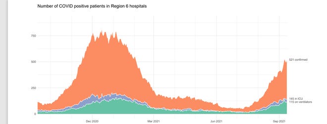 Hyson noted that on June 14, the region’s hospitals had 62 COVID-19 patients, with 26 in intensive care and 26 on ventilators. On Sunday, there were 521 patients, 145 in intensive care and 115 on ventilators.