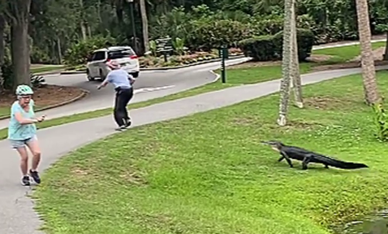A man visiting Hilton Head Island in South Carolina with his family captured cellphone video of an alligator charging at a fisherman.