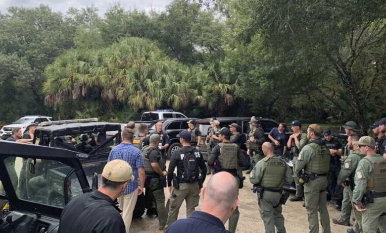 More than 50 North Port police officers, FBI agents and members of other law enforcement agencies searched the 24,000-acre Carlton Reserve in the Sarasota, Florida area. Authorities used drones, scent-sniffing dogs and all-terrain vehicles to search the reserve, which has more than 100 miles of trails, as well as camping grounds. Investigators took some of his clothing from his parents' home Friday night to provide a scent for the search dogs.