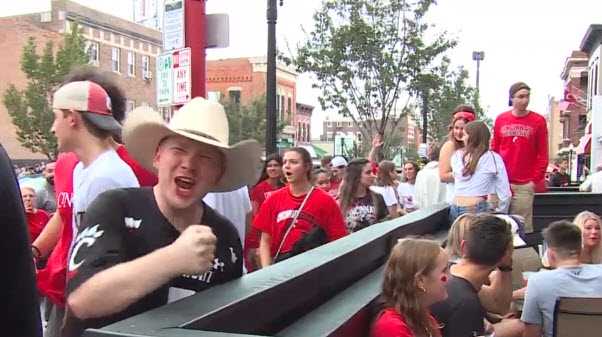 For college students, there is nothing quite like celebrating a big win.That's what they did up and down Short Vine in Corryville Saturday in the heady aftermath of University of Cincinnati's win over Notre Dame.The outcome should vault the Bearcats higher in the rankings.It sent their fans into stratospheric overload, the celebration spilling onto the street at times with high five's and big hugs.Senior Seth Friedman was exuberant."Seeing our team go from zero to one-hundred, going to the Big 12, beating Notre Dame, it's insane," he concluded.2013 alumna Tiera Dobbins couldn't hold back her overflowing joy."We beat Notre Dame," she shouted with arms raised high. "Brian Kelly, we gotcha. Oh, I love it."The Bearcat fans could hardly contain their unbridled UC-ness on this day.A stone's throw from campus, Martino's played host to a watch party and we watched them watching.When asked what it is like to be a UC football fan right now, Sophomore Eden Marques said "Oh my gosh, it's so exciting."In the middle of all the madness along Short Vine, with the possibility of a playoff path still intact, one guy with a Fighting Irish insignia stood out and was gracious enough to explain himself."Well, I pay tuition here," chuckled Dave Duco of Mason. "So, my son and my family are in there cheering for the Bearcats."Duco grew up in Steubenville."I'm a Catholic from a steel town. So, we were born and bred. My dad would roll over in his grave if I wasn't cheerin', wearin' a Bearcat jersey over ND."It was a hothouse of Cat fever at Martino's Saturday afternoon.Students believe the feeling they're enjoying right now won't be going away anytime soon.Sophomore Cooper Tadman said, "You can tell how big it is here. I mean, this is an away game. We're all packed in here like a sellout. We're excited, especially for a big game like this."Students are in the moment.They hadn't had one quite like this.Their team is 4-0. The feeling is if they take care of conference business, serious playoff consideration must be given.They'll be helping to rock Nippert Stadium next Friday night when the Temple Owls come to the Clifton Campus where the football vibe is brimming with possibility.