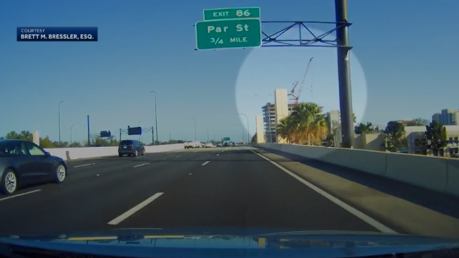A nearby dashcam belonging to Brett M. Bressler captured the moment the equipment came crumbling down.