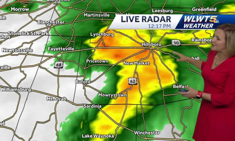 ALL RIGHT, SO BE WHETHER AWARE OBVIOUSLY. BE MUCH DIFFERENT THAN WHAT WE’VE BEEN SEEING OVER THE LAST COUPLE MORNINGS. I FEEL LIKE THEOS PARTICIPATED RED LEGS RUN ARE GONNA BE AND DEFINILYTE MORELL A IS GONNA BUM RUSH THE YARD HERE. IT’S BEEN FEELING LIKE SUMMER FOSOR LONG AND IT’S REALLY THE DIFFERENCE BETWEEN THE WARM MUGGY AIR THAT WE’VEAD H IN PLACE AND THIS COOL DRY AIR MOVING IN IT’S GONNA CAUSEHE T POTENTIAL FOR SOME THUNDERSTORMS THIS AFTERNOON NOW SO FAR TODAY, WE’VE SEEN RAIN. KIND OF MODERATE AT TIMES BUT NO THUNDER AND LIGHTNING IN OUR AREA JUST YET, WCHHI IS GREAT THINGS COULD CHANGE AS WE HEAD INTO THE AFTERNOON. IN FACT, YOU CAN SEE THE CLOUDS FITTING A LITTLE BIT BACK TOWARD INDY RIGHT NOW. WE DO HAVE THICK CLOSUD FOR MUCH OF THE 275 LOOP AND YOU CAN SEE A FEW POCKETS OF MODETERA RAIN ONE RIGHT HERE AT 275 AND 75 NEAR SROHAILNVLE STARTING TO SEE THAT RAIN LIFT TOWARD WESTCHESTER AND LIBERTY TOWNSHIP AS WE GO CLOSER TO DOWNTOWN THAT RAIN PICKING UP IN FORT MITCHELL AND COVINGTON AND CROSSING THE RIVER. INTO DOWNTOWN CINCINNATI AS WE HEAD EAST HIGHLAND COUNTY ONE OF THE SPOTS WHERE NO MATTER WHERE YOU ARE FOR THE MOST PART YOU’RE DEALING WITH MODERATE RAIN THAT’S SLIDING RIGHT UP 62 IN THE DIRECTIONF HI OLLSBORO AND YOU’RE GONNA SEE THAT RAIN GET A LITTLE BIT MORE INTENSE IF YOU’RE NEAR LEESBURG OR GREENFIELD AS WE GO A LITTLE FURTHER SOUTH INTO KENTUCKY. YOU CAN SEE THE LHTIG RAIN RIGHT NOW IN AUGUSTA A LITTLE HEAVIER RIGHT ALONG THE RIVER NEAR RIPLEY AND MORANBURG, BUT AS WE HEAD OUT AND GIVE YOU THE FULL PICTURE OF WHAT’S GOING ON. WE HAVE A BIG COLD FRONT COMING IN OUR DIRECTION. THAT AREA OF LOW PRESSURE IS GOINTOG SLIDE UP IN THE DIRECTION OF CLEVELAND. WE’VE GOT THAT WARM MUGGY AIR IN PLACE AND AINGA ON THE BACK SIDE COOLER DRYER AIR AND YOU’LL NOTICEHE T CORRIDOR OF THE THREAT FOR SEVERE WEATHER IS BASICALLY RIGHT UP BY 71 WHICH PUTS US POTENTIALLY IN THE MIX FOR SOME STRONGER STORMS, BUT KIND OF DEPENDS ON HOW THE NEXT COUPLE OF HOURS GO SO YOU CAN SEE HERE AS OF RIGHT NOW ALL OF GREATER CINCINNATI UNDER A SLIGHT RISK FOR STORMS TTHA COULD BE ON THE STRONGER SIDE. WE ABSOLUTELY HAVE A STRONG COLD FRONT COMING. TRUE WIND SHEAR. THAT’S KIND OF THE SHIFTING OF WINDS IN OUR ATMOSPHERE WITH THATOW L AROUND WE HAVE THAT. WE’VE GOT A LOT OF MOISTURE RIGHT? WE HAVE HAD THE MGYUG AIR IN THE RAIN INSTABILITY. THAT’S KIND OF THE ONE THING THAT MIGHT BE MISSING IN THIS SCENARIO. SO AS WE GO THROUGH THE NEXT COUPLE OF HOURS, WE’VE GOT RNAI MOVING THROUGH RIGHT NOW IF WE START TO SEE SOME CLEARING IF THE SUNEE PKS OUT THAT’S GOING TO INCREASE THAT INSTABILITY AND GIVE US THE POTENTIAL FOR STRONGER STORMS LATE AFTERNOON AND EVENING AND THAT’S RIGHT WHEN YOU GET YOUR FRIDAY EVENING PLANS STARTED. SO NOW THROUGH THREE O’CLOCK SCATTERED RAIN, WE’RE GONNA PAY ATTENTION TO SEE IF SOME AREAS SEE THE SUN ESPECIALLY OFFO T OUR WEST LOOKING AT THREE O’CLOCK TO NINE O’CLOCK IF WE HAD TO KIND OF BALL PARK THE BEST CHANCES FOR RAIN STORMS AND MAYBE SOME STRONGER STORMS. IT WOULD BE BETWEEN THREE AND NINE PM SO THAT WOULD BE FOR GHHI SCHOOL FOOTBALL TONIGHT OR HAUNTED HOUSES THAT KIND OF THING OVERNIGHT ONCE WE GETOT ABOUT 10 OR 11 O’CLOCK. I THINK WE TRANSITIONED TO STEADY SOAKING RAIN AND IT’S GONNA BE HEAVY AT TIMES. SO IF WE IS SEVERE WEATHER IT WOULD BE LATE AFTERNOON AND EVENING AND KDIN OF DEPENDS ON HOW THE NEXT FEW HOURS PLAY OUT FUTURECA SSTWSHO THE RAIN ON TOP OF US HERE FOR THE LUNCH HOUR. THEN YOU’LL NOTICE AS WE HEAD INTOHE T MIDDLE OF THE AFTERNOON, TWO, THREE O’CLOCK. YES, THEY’LL BE AREAS DEALING WITH RAIN, MAYBE A LITTLE THUNDER AND LIGHTNING IN THE MIX BY THE MID-AFTERNOON, BUT ALSO SOME SPOTS WHERE YOU'R’ NOT SEEING ANY ACTION AND MAYBE A LITTLE BIT OF CLEARING BY FIVE O’CLKOC RAIN AND MAYBE SOME THUNDERSTORMS SAME THING AT 7PM FOR HIGH SCHOOL FOOTBLAL TONIGHT. SO SO AGAIN, IT’S NOT A TOTAL. YOU KNOW SLAM DUNK THAT WE’RE GOING TO HAVE ANY CANCELLATIONS OF FOOTBALL GAMES TONIGHT, BUT THERE’S DEFINITELY THE POSSIBILITY OF SOME LIGHTNING WRITE A GAME TIME NOTICE THAT HEAVIER STEADIER RAIN KICKING IN AFTER TEN O’CLOCK TONIGHT AND CONTINUING THROUGH ABOUT 5M A TOMORROW MORNING. IT’LL BE BETWEEN 5:00 AND 8 AM THAT THAT RAIN MOVES OUTND A THEN WE’RE LEFT WITH COOLER AIR FOR THE WEEKEND. SO TODAY A WEATHER. HALF DAY AGAIN. WE’RE WATCHING FOR THE POTENTIAL FOR MAYBE SOME STORMS WITH SOME GUSTY WINDS BEING OUR MAIN CONCERN CAN’T RULE OUT A TORNADO IN OUR RIOEG ANLL OF THAT KIND OF DEPENDS ON HOW THINGS GO THE NEXT COUPLE OF HOURS. SO WE’RE HERE TRACKING THOSE STORMS AND THE POTENTIAL FOR SOME STRONGER STORMS INTO THE WEEKEND INTOHE T NIGHT FOR THE WEEKEND TEMPERATURES TOPPING OUT IN THE