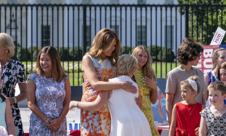WASHINGTON (AP) — Melania Trump is marking the 100th anniversary of women gaining the right to vote with an art exhibit based on works by students from all 50 states and Washington, D.C.