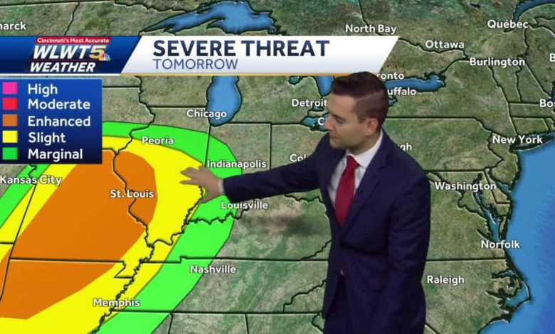 ISTHS I THE WEIRD TIME OF YR.EA USUALLY YOU HAVE THOSE COLD FRONTS ROLLING THROUGH. LU CKILY FOR US, WE ARE NOT GOING TO SEE ANY OF THAT TODAY. THAT COULD CHANGE TOMORROW. WE ARE GOING TO HAVE A WARM FRONT MOVE THROUGH TOMORROW FOLLOWED BY A COLD DURING THE OVERNIGHT. THAT WILL BE A LITTLE INTERESTING. WE WILL GET TO THAT IN JUST A SECOND. RAIN FURTHER TO THE NORTHEAST. THAT STAYED AWAY FROM US OVERNIGHT. WE HAVE BEEN MAINLY DRE.IV YOU SEE THAT GREEN OUT THERE TO THE WEST. EVERYTHINGE W HAD IN TERMS OF LIGHT DRIZZLE, THAT IS GOING TO BE POSSIBLE THROUGH MOST PORTIONS OF THE DAY. A LITTLE SUNSHINE TODAY, NOT A LOT. THIS SYSTEM STARTING TO DEVELOP PART OF WHAT IS MOVING IN TOMORROW. WE WILL HAVE THAT RMWA FRONT FOLLOWED BY THAT COLD FRONT LATER TONIGHT. IT IS A COOL AND CRISPTA SRT TO YOUR MORNING. FEELING LIKE W45ITH WINDS PICKING UP A LITTLE BIT. MID TO UPPER 40'S’FOR MOST AREAS. YOU HAVE A FAIR AMOUNT OF PEOPLE AT THAT 50 DEGREE MARK .YOU TAKE A LOOK AT WHAT YOU ARE EXPECTING THROUGH THE FIRST PARTS OF THE MORNING. IF YOU HAVE HIGH SCHOOL SPORTS PRACTICES, MID TO UPPER 40’S UNTIL 10:00. LOAD T MOID 50 RANGE THROUGH NOON. OVERALL A NIRCE DAY THAN WHAT WE HAD YESTERDAY. STILL BELOW AVERAGE. THE AVERAGE HIGH IS 64. YOU HAVE A BETTER CHANCE FOR SPOTTY SHOWERS AND HEAVY STUFF TO MOVE IN LATER THIS AFTERNOON AND EVENING. THIS IS FOR TOMORROW AFTERNOON. BECAUSE OUR STORM THREAT IS GOING TO BE OVERNIGHT, IT IS GOING TO BE INTERESTING. YOU LOOK AT THE DAY THREE OUTLOOK, AND IT IS FURTHER OFF TO THE EAST. OVERNIGHT, STORMS WEEKEND AIT. B WE WILL BE KEEPING A CLOSE EYE ON OUR AREA AS THAT WARM FRONT MIXES WITH THAT COLD FRO.NT STARTING TO SEE CHANCES FOR SHOWERS PICKUP. IF YOU HAVE LATE EVENING PLANS, MAKE SURE YOU HAVE THAT UMBRELLA. WE ARE SEEING MORE WIDESPREAD SHOWERS, DOWNPOURS AS WELL. MAYBE AS EARLY AS THE TIME WE COME ON ERIC TOMORROW, WE ARE DEALG INWITH SOME OF THIS. THIS IS NOW NOON. THAT FIRST BATCH MOVES ON NOW. WHEN THAT WARM FRONT FINALLY MOVES THROUGH AROUND 4:00 TO 6:00, I THINK WE GET SOME DRY TIME. NOT A LOT GOING ON. THAT COLD FRONT NOT FAR BENDHI IT. THAT IS GOING TO ROLL THROUGH DURING THE OVERNIGHT HOURS. EARLY MONDAY MORNING, THAT LINE IS GETTING CLOR.SE SOME POTENTIALLY SEVERE WEATHER ROLLING THROUGH. IT IS MAKING ITS WAY IN OVERNIGHT. IT DOES DECREASE OUR SEVERE THREAT. MESO OF THOSE STORMS GOING TO BE PACKING A PUNCH. A LOT OF US WAKING UP EARLY NDMOAY MORNING. 68 DEGREES TOMORW.RO WE WILL BE COMFORTABLE IF WE GET SOME DRY TIME. THE COLD FRONT MOVES IN BEHIND. WE ARE IN THE MID-50’S TUESDAY