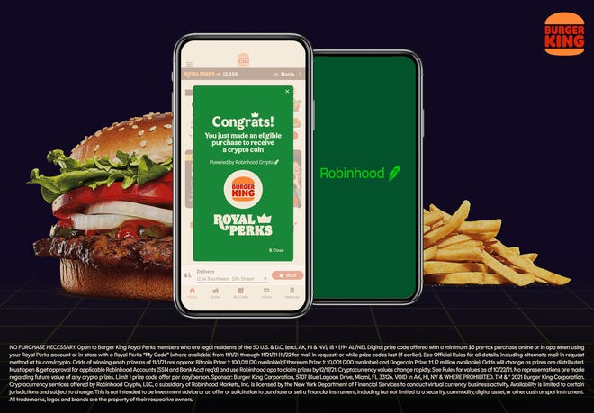►Burger and a 'side of' crypto?:Burger King teams up with Robinhood to give away Bitcoin, Ethereum, Dogecoin
