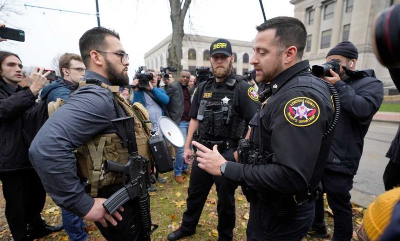 As Kyle Rittenhouse was acquitted in two killings that he said were self-defense, armed civilians patrolled the streets near the Wisconsin courthouse with guns in plain view.
