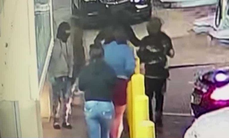 As he steps into the parking lot, another person is seen grabbing him. Teetor is able to break free and backs up, but the confrontation continues.