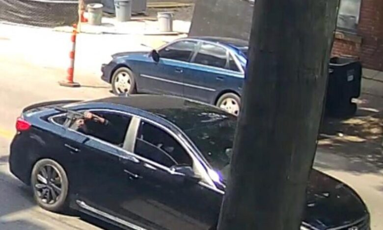 The photos below show the black Hyundai in the middle of the frame. A large weapon can be seen being aimed out of the rear passenger-side window.