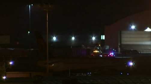An airport spokesperson told TV stations that the vehicle went through the gate at about 9 p.m. Wednesday and went onto the airfield, damaging runway lights. The driver then abandoned the vehicle and fled on foot, the spokesperson said.