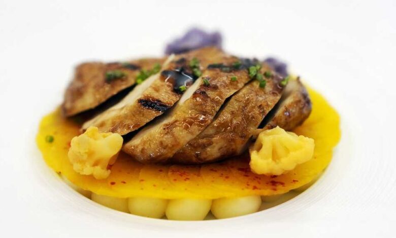 Upside, based in Berkeley, operates a 70,000-square-foot building in nearby Emeryville. On a recent Tuesday, visitors entered a gleaming commercial kitchen where chef Jess Weaver was sauteeing a cultivated chicken filet in a white wine butter sauce with tomatoes, capers and green onions.