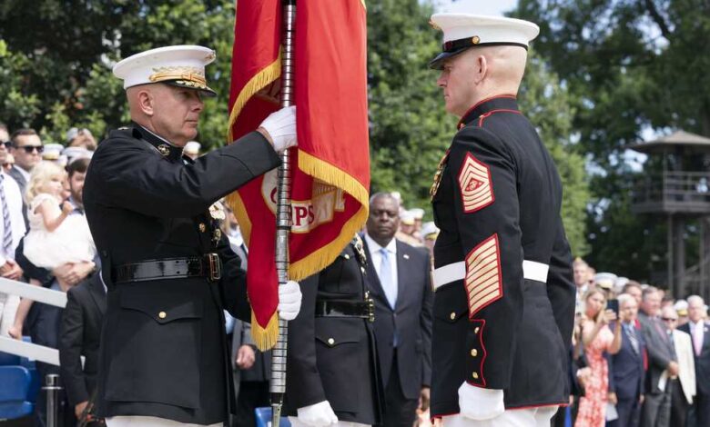 In the video player above: See moments from a Relinquishment of Office ceremony held by the U.S. Marines