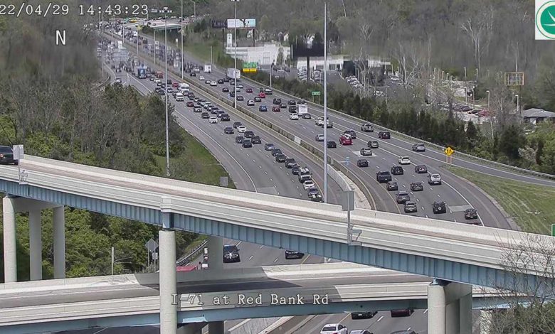 4:18 p.m. The crash has been cleared and all lanes are open. 3:26 p.m.The two right lanes along southbound I-71 at Exit 9 toward Red Bank Road are blocked due to a crash, according to police.Stop-and-go traffic is backed up to Exit 15 toward Pfeiffer Road.Authorities advise motorists to expect delays of up to one hour.2:56 p.m.The two right lanes along southbound I-71 at Exit 9 toward Red Bank Road are blocked due to a crash, according to police. Stop-and-go traffic is backed up to Exit 14 toward Ronald Reagan Cross County Highway and OH-126.Authorities advise motorists to expect delays of up to one hour.2:20 p.m.Police are responding to a crash blocking the two right lanes along southbound I-71 at Exit 9 toward Red Bank Road. Stop-and-go traffic is backed up to Exit 11 toward Kenwood Road. Authorities advise motorists to expect delays of up to 10 minutes. This story will be updated with the latest information as it comes in