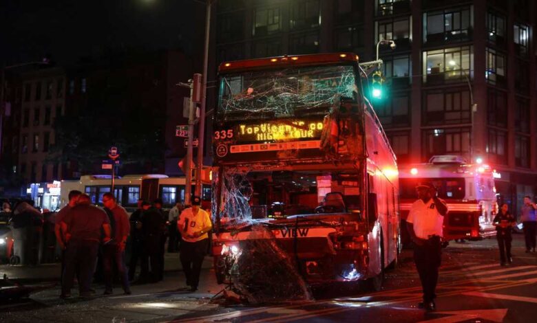 Dozens injured after a double-decker bus and a city bus collide in Manhattan, officials say